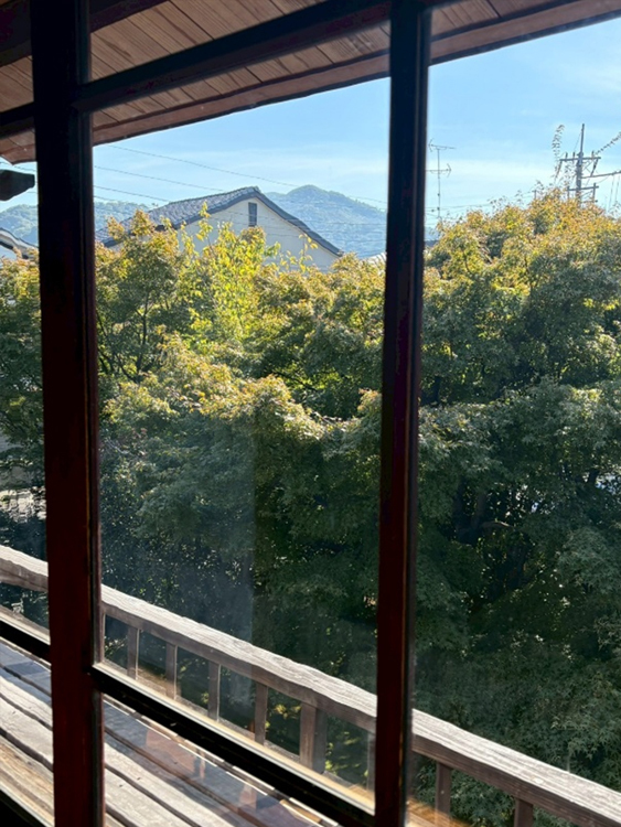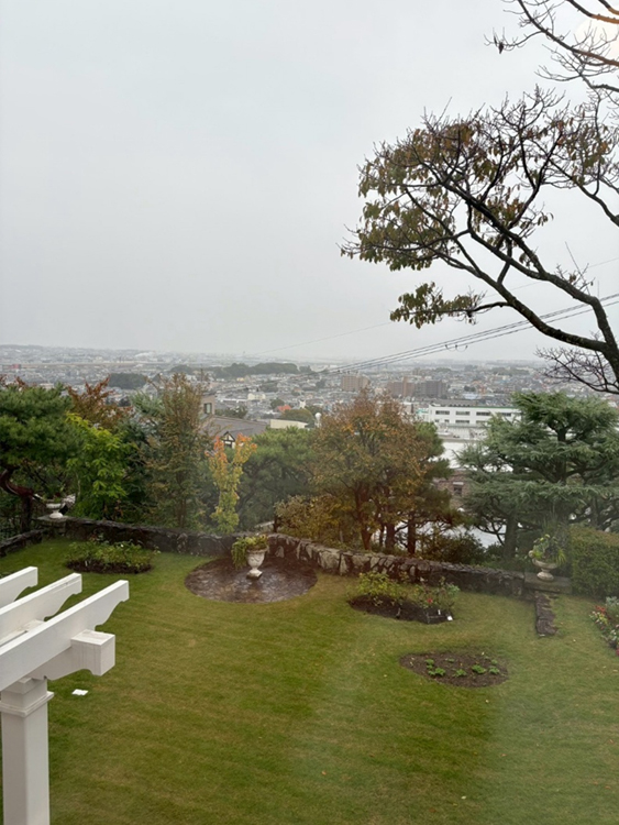 この日はあいにくの雨でしたが、2階の窓から見える景色は街が一望できる最高のロケーションでした。