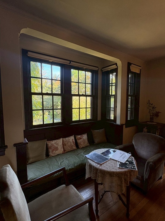 居間には出窓と腰掛けを合わせた「ウィンドウ・シート」と呼ばれるものがあり、空間のポイントとなっています。